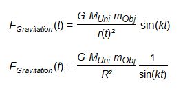 Der Sinus-Term berücksichtigt während der Expansion des Universums sein Gravitationspotential. Die relativistische Gravitationskraft zwischen dem universellen Photonenfeld und einem beliebigen quantisierten Unterraum wird mit der Formel der Sinusperiodizität angegeben.