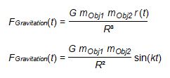 Diese Kraftformel beschreibt die relativistische Gravitationskraft zwischen zwei Objekten relativ zur Dimensionsebene D56, welche parallel zum Teilchenfeld verläuft.